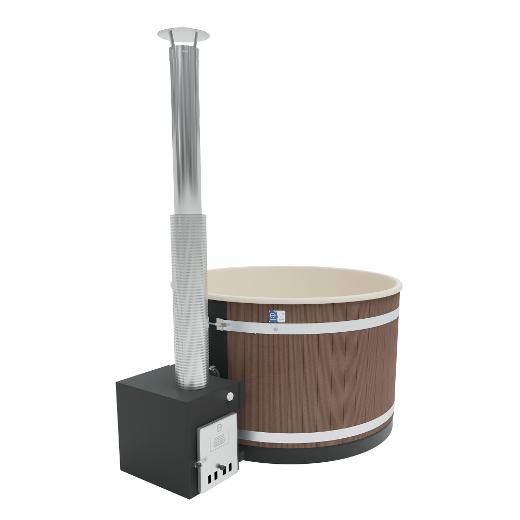 Als Außenofen kommt der schwarz gehaltene, leistungsfähige Cube zum Einsatz, der sich ideal zum Beheizen auch größer Badefässer eignet. Er wurde aus hochwertigem Meeresaluminium gefertigt, was eine äußerst gute Wärmeleitfähigkeit sicherstellt.